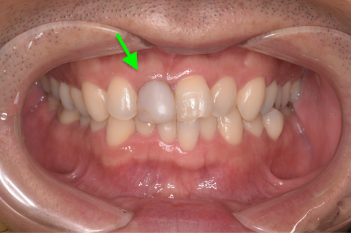 そのうえで、右上1番の被せ物をオールセラミッククラウンでやり直しました。