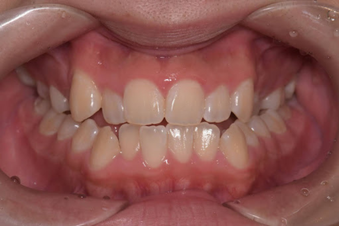 過蓋咬合は、上の前歯が下の前歯を覆い隠してしまう状態です。